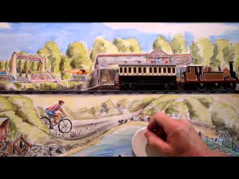 The principal aim of the piece was bring to life the history of the railway in a way that would engage the imagination, particularly the young. It was to be part of a larger project designed to explore the history of the borough by means of a timeline, videos, artifacts and other interactive activities. Operated by hand and with the sounds of the engine chuffing and whistling, the train moves from past to present in a landscape filled with local history. On its way it passes tunnels, bridges, a turning windmill ending up at the seaside with bathers jumping up and down in the sea.